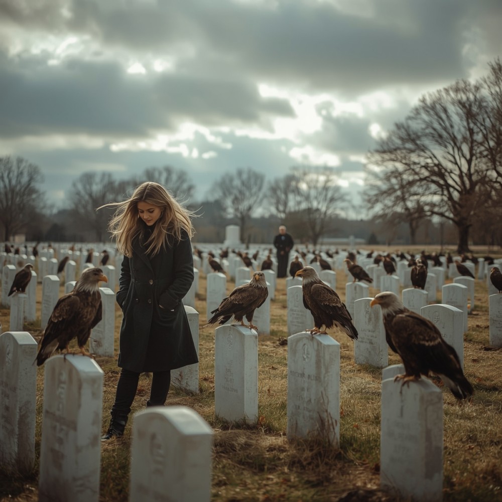 A gyászolók előbb hitetlenkedve néztek felfelé. A pap kezében remegett a kereszt, a katonák egy pillanatra elhallgattak, a trombita félhangon elcsendesedett.A madarak egyre alacsonyabbra ereszkedtek, és végül leszálltak – mindegyik egy-egy sírkő tetejére.