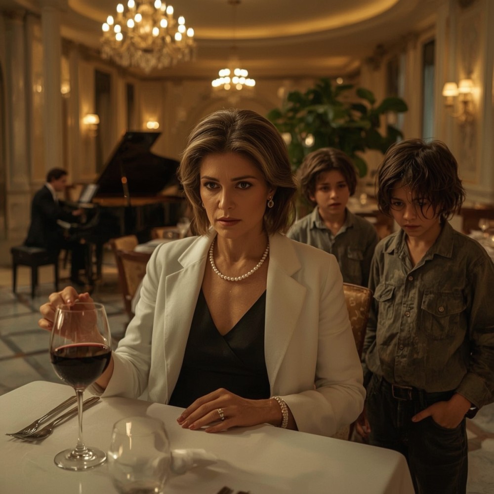 Az asztalnál ülő férfiak épp a következő nagy projekt számításairól beszéltek, amikor az étterem ajtaja halkan megnyikordult, és két vékony, nyúzott fiú jelent meg a küszöbön.