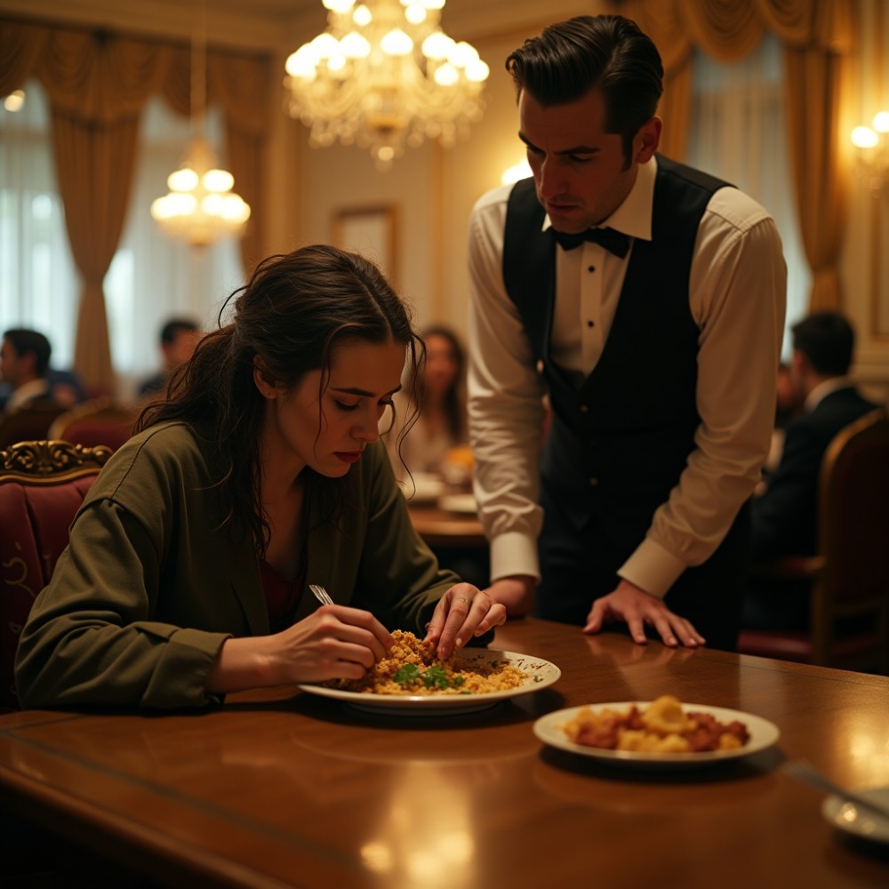 Néhány perc múlva a pincér visszatért. A kezében egy friss, gőzölgő tányért hozott — rajta sült csirke, párolt rizs, egy szelet puha kenyér, mellé pedig egy csésze forró tea. A tányért előttem tette le, óvatosan, mintha attól tartana, hogy összetörök, ha túl erős mozdulatot tesz.