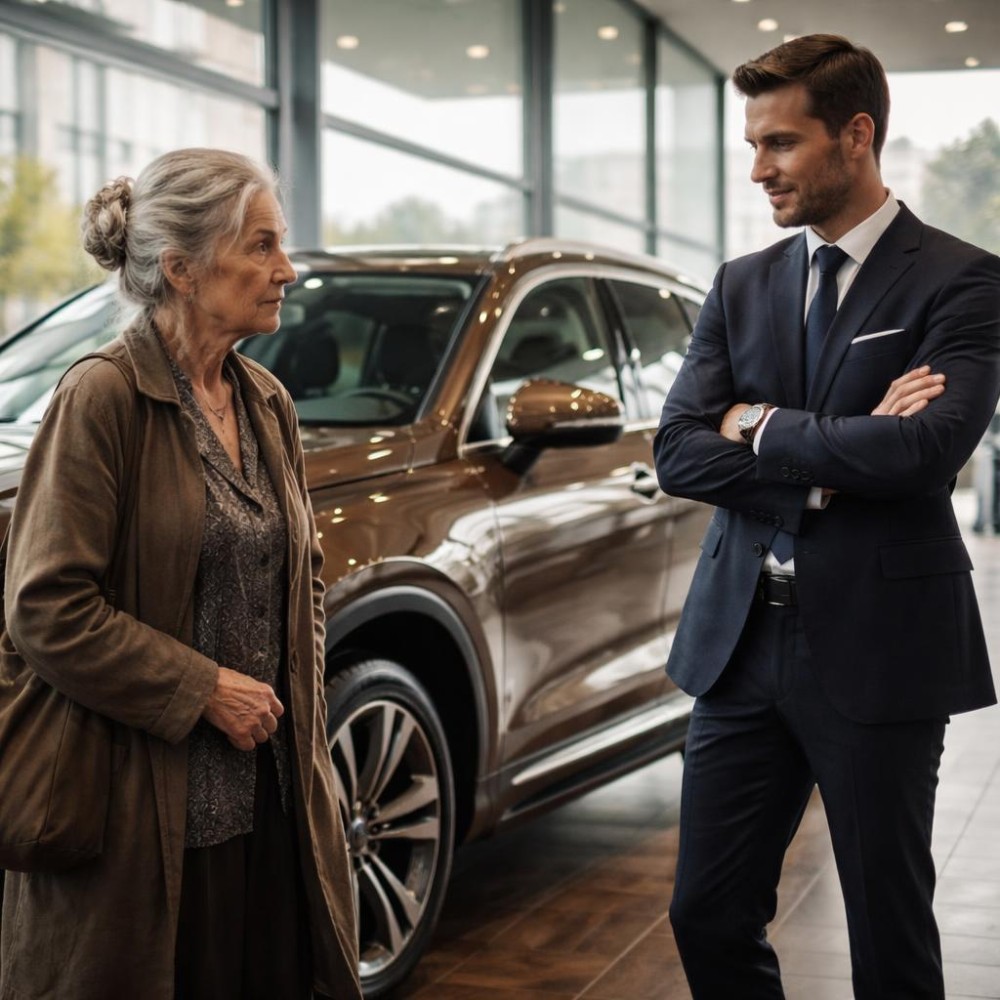 A pult mögött álló férfi, Kovács Gergő, először csak fél szemmel figyelte. Megtanulta már, kik azok, akikből üzlet lesz, és kik azok, akik csak nézelődnek. Az asszony nem illett bele egyik megszokott kategóriába sem, de a kabátja, a kissé meghajlott tartása és a bizonytalan mozdulatai gyorsan eldöntötték a kérdést a fejében. „Megint valaki, aki eltévedt” – futott át rajta, miközben úgy tett, mintha a monitoron keresne valamit. Mégis, újra és újra felpillantott, mert volt az asszony mozgásában valami szokatlan türelem, mintha nem sietne sehova, mintha ideje lenne. Amikor az megállt egy sötét színű terepjáró mellett, Gergő már tudta, hogy oda fog menni, csak kivárta a megfelelő pillanatot.