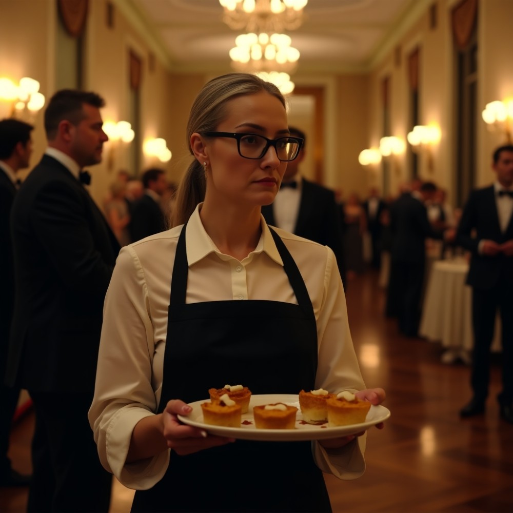 A Márvány Terem csillárjai meleg fénnyel árasztották el a teret. A vendégek nevetgéltek, a pincérek szinte észrevétlenül suhantak az asztalok között. És ott voltam én is. Egy tálca előétellel a kezemben, mozdulataimat előző éjjel gyakoroltam a konyhában, YouTube-videók alapján.