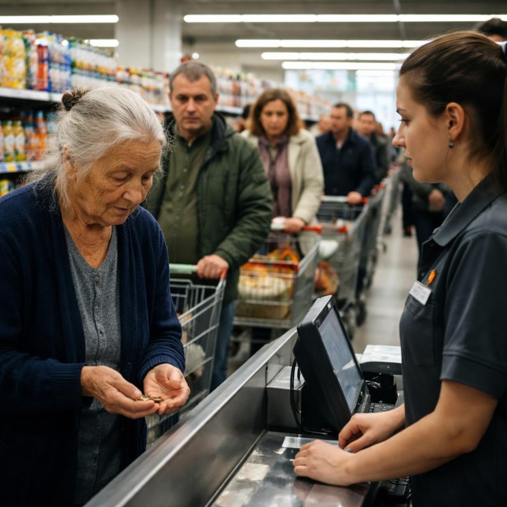 Katalin néni lassan összegyűjtötte a maradék pénzt, átcsúsztatta a pulton, és miközben a blokkot átvette, egy pillanatra megállt, mintha mondani akarna még valamit, de végül csak a szatyrát igazította meg a vállán. A sor már mozdult is előre, a mögötte állók szinte azonnal elfoglalták a helyét. Ahogy elindult kifelé, a biztonsági kapu mellett egy középkorú férfi állt, aki eddig csendben figyelte az egészet, és most egy lépést tett felé.