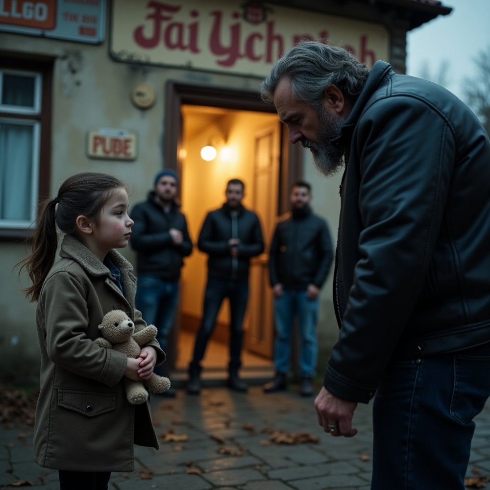 Egy kislány állt ott. Körülbelül hat éves lehetett, soványka teste szinte beleolvadt a szürkületbe. Kopott, piszkos ruhát viselt, mezítláb volt, és egy foszladozó plüssmackót szorongatott. Arca sáros volt, haja kócos, de a szeme… az a tekintet elnémított mindenkit.