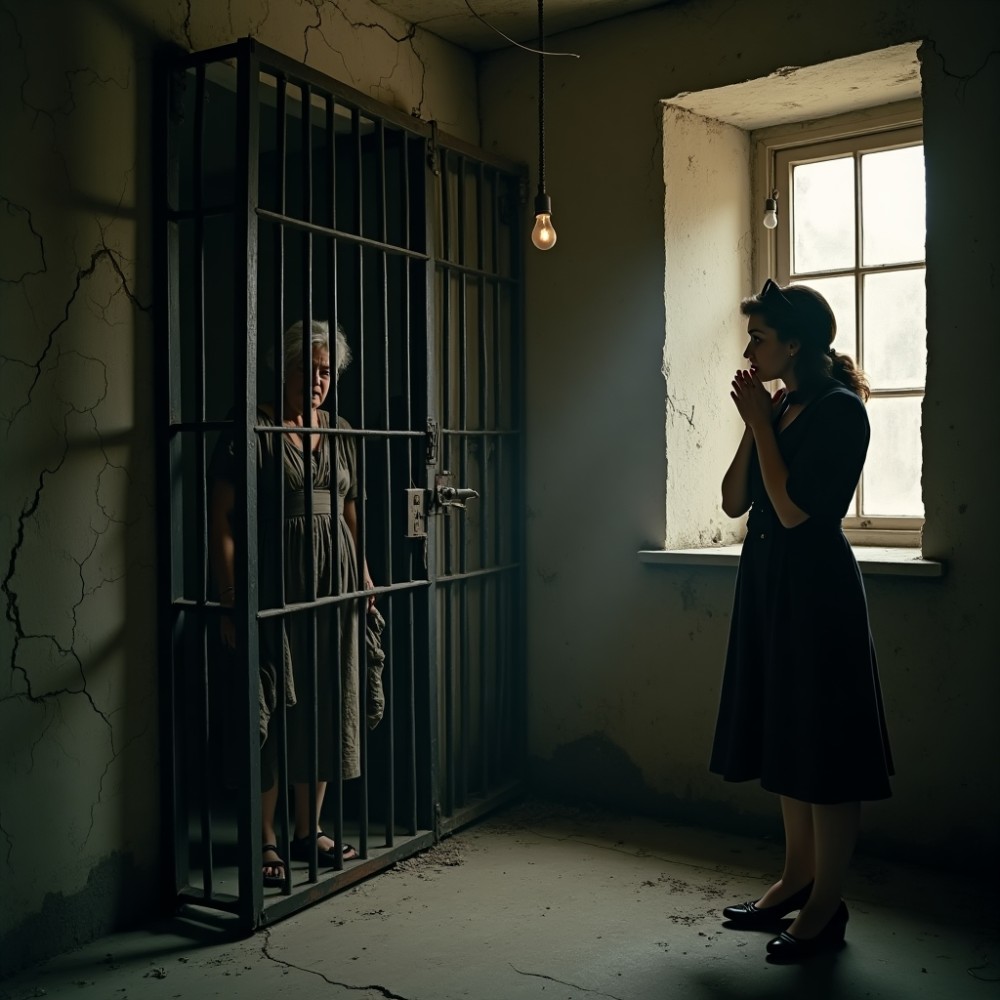 A zseblámpa fénye egy vasrácsos ketrecen állapodott meg. A sarokban egy rongyokba burkolt, reszkető női alak kuporgott.