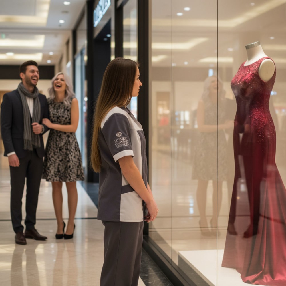 Miközben lehajolt egy csillogó papírdarabért, tekintete egy kirakatban kiállított bordó estélyire esett. Az anyag nehéznek és súlyosnak tűnt, mégis selymesen omlott a próbababára. A ruha szinte világított a fények alatt, mintha a maga nemében élőlény volna.