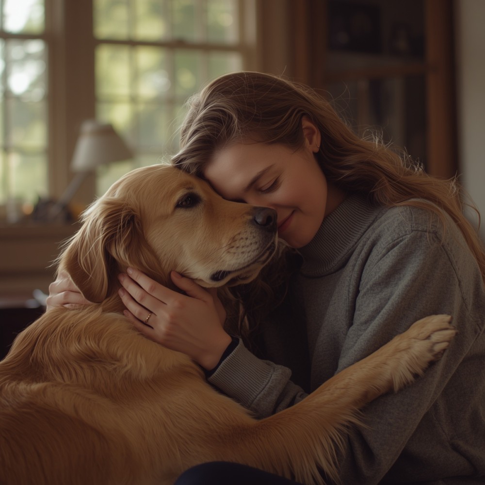 A kutya azonnal felugrott mellé, de nem tolakodóan: csak leült, és a fejét Luca térdére ejtette. A szeme olyan barna volt, mint a frissen ázott föld eső után, és ugyanazt a biztonságot árasztotta. Luca végigsimította az arcát, majd ujjaival beletúrt a kutya selymes szőrébe.