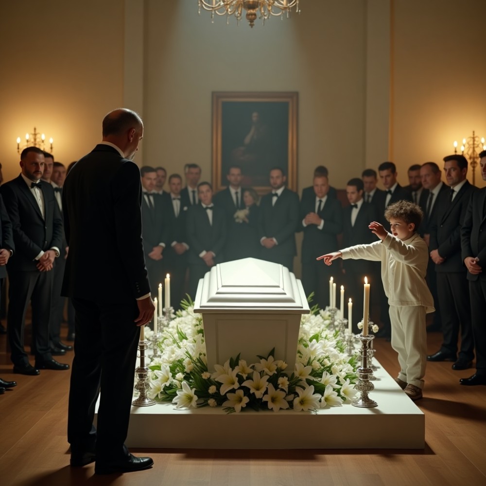 A ravatalozóban döbbent csend lett. A hegedűs keze megállt a húrok felett, a pap arcáról lefagyott az együttérzés. Mindenki egyszerre fordult a fiú felé, mintha hirtelen megzavarták volna a valóság rendjét.