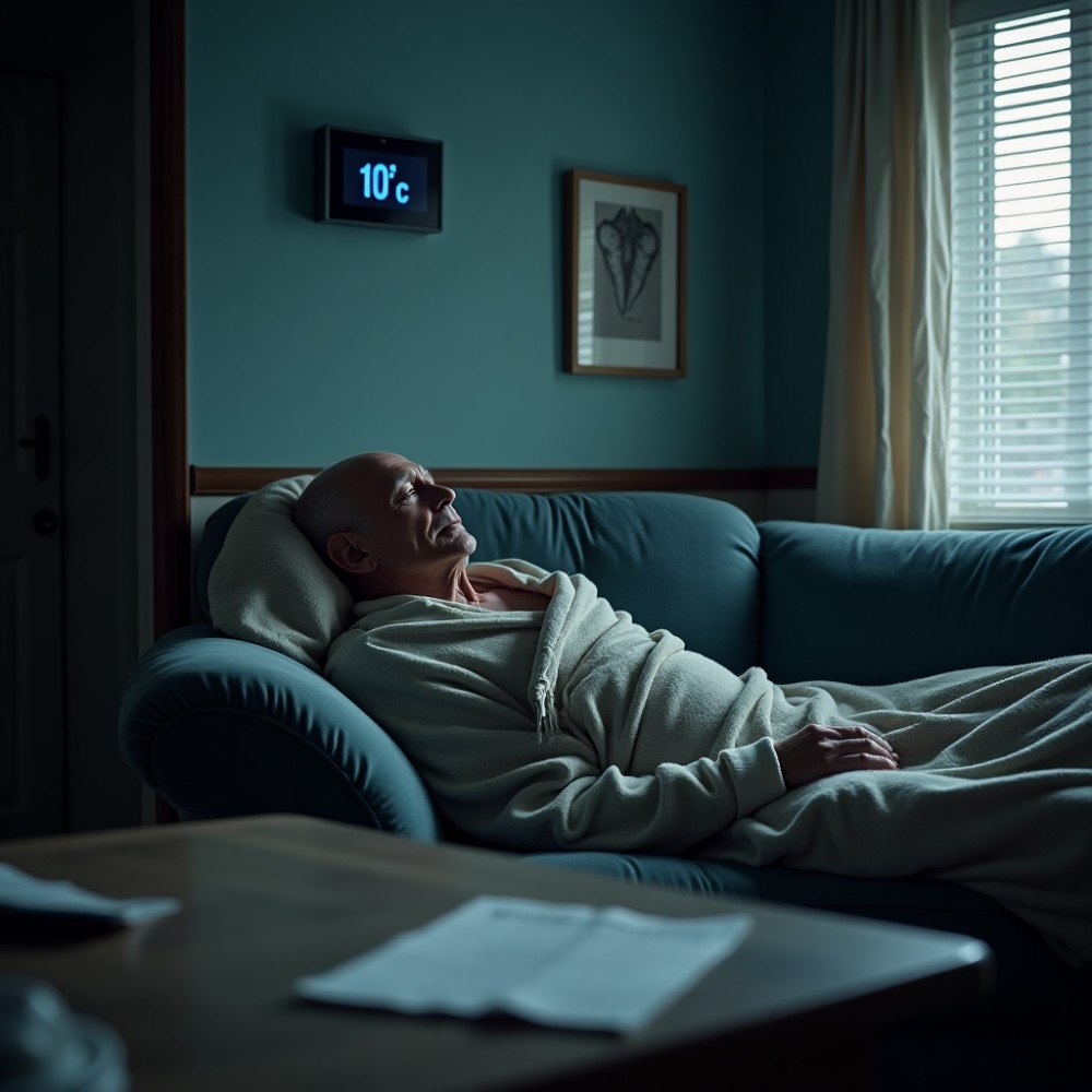 Lajos bácsi ott feküdt a kanapén. Inkább már csak egy árnyéka volt önmagának. A mellkasa lassan emelkedett-süllyedt. A szemei csukva, ajkai kékek. Egy vékony pokróccal takarták be – alatta az alvásból származó vizeletfolt kifagyott a huzatra.