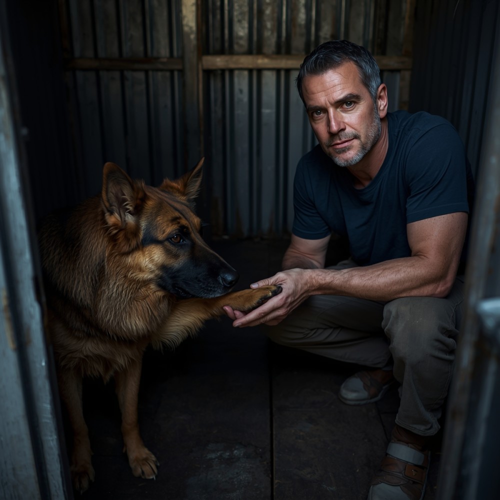 A fémajtó csattanása végigvisszhangzott a betonfolyosón. A legtöbb kutya azonnal ugatni kezdett, a hangok egymásba csúsztak, ideges, éles zajjal töltve meg az épületet. Árnyék teste megfeszült, mintha hirtelen áram futott volna végig rajta. A füle hátracsapódott, és egy pillanatra úgy tűnt, hátraugrik. Márk azonban nem mozdult. Továbbra is guggolva maradt, a keze nyitva, nyugodtan a térdén.