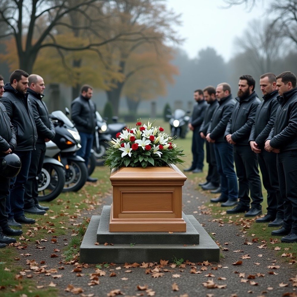 Tamás péntek reggel alig hitt a szemének, amikor kinézett az ablakon. A ravatalozó előtt lassan gyülekeztek a motorosok. Sorban, fegyelmezetten, mintha csak egy katonai díszszemlére készültek volna. A hideg ellenére is tiszta, fekete ruhában, oldalukon a klub jelvénye. A motorok lassan doromboltak, ahogy egymás után érkeztek. Szám szerint ötvenhárom motoros – az ország minden tájáról.