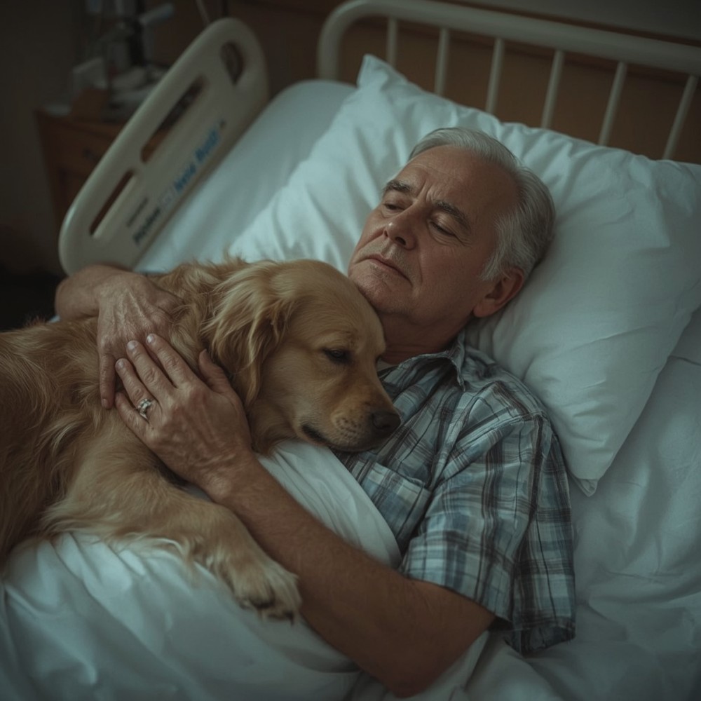 Amikor a kórterem ajtaja kinyílt, Ricsi felemelte a fejét, és mintha hirtelen húsz évet fiatalodott volna, előreszökkent. Felugrott az ágyra, a gazdája mellkasára fektette a fejét, és halkan nyüszíteni kezdett.
