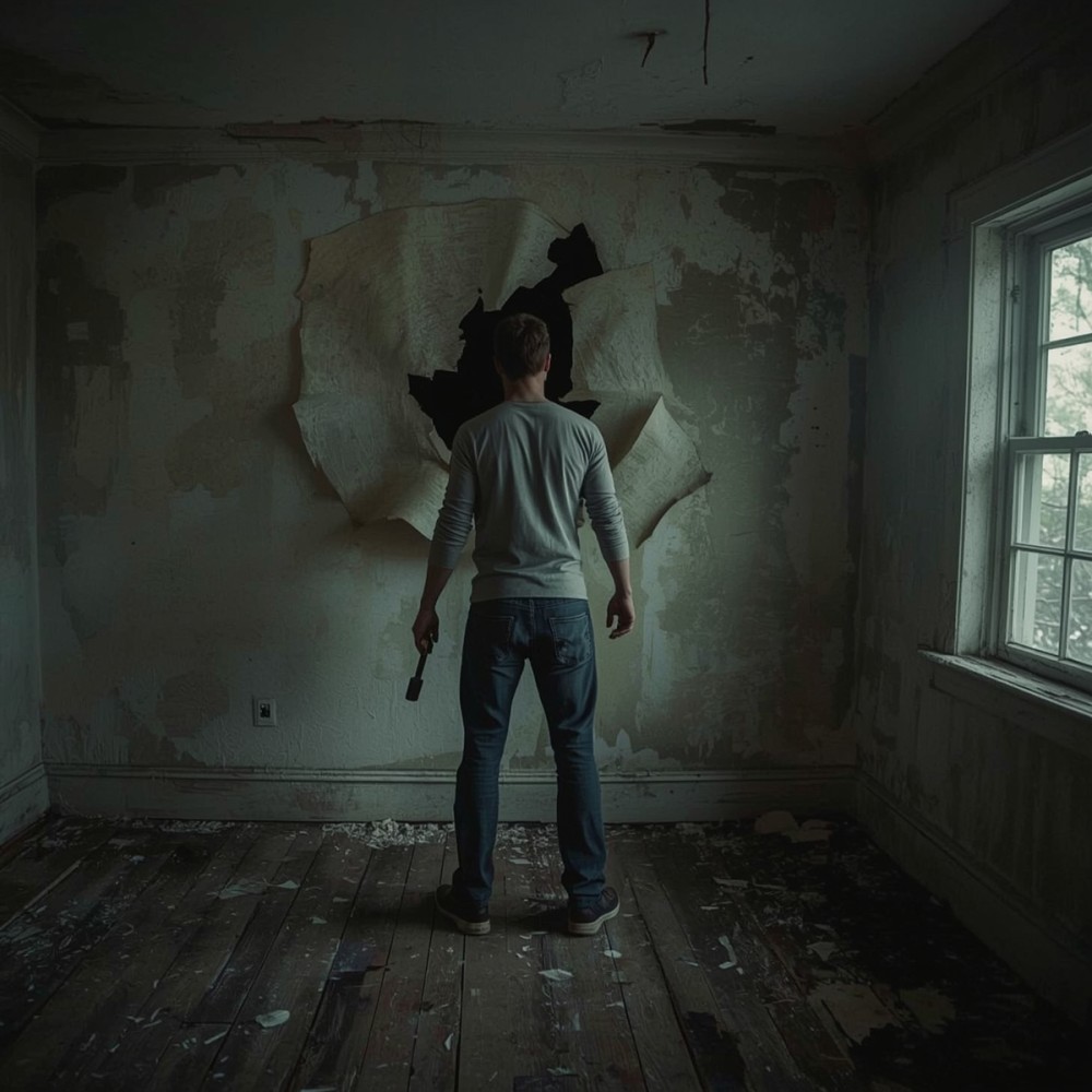 Egy lyuk volt a falban. Nem üreg, nem hézag – lyuk. Valaki szándékosan ütötte át, majd gondosan lefedte a tapétával.