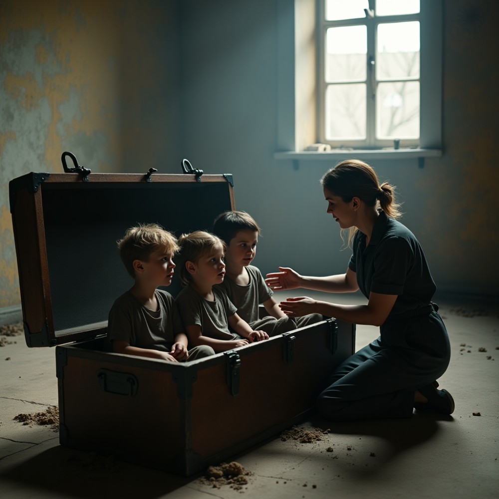 A gyerekek szinte hangtalanul rábólintottak, és kiszálltak a ládából. Minden mozdulatuk fájdalmas volt, mintha elfelejtették volna, hogyan kell járni.