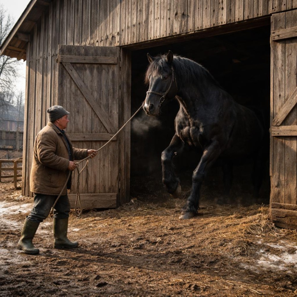 A tél vége felé járt az idő, amikor a sár már nem volt kemény, de még nem is engedett fel teljesen, csak ragadt a csizmára, mint valami makacs gondolat. János a pajta előtt állt, kezében a kopott kötéllel, és nézte, ahogy a hatalmas ló újra meg újra nekifeszül az ajtónyílásnak, mintha nem férne el benne, pedig pontosan tudta, hogy be szokott. A faajtó nyikorgott, az egyik pántja már régóta lötyögött, és minden mozdulatnál úgy hangzott, mintha panaszkodna. A ló orrlyukai kitágultak, gőz tört elő belőlük a hideg levegőben, a patái idegesen kaparták a küszöböt. János megigazította a sapkáját, és közelebb lépett, óvatosan, mintha egy idegen állathoz közeledne, nem ahhoz, amit évek óta etet.