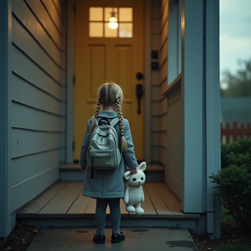 A lány nem lehetett több nyolc évesnél. Szőke haját két fonatba kötötte, a kabátja gombjai fényesen csillogtak a napfényben. A kezében egy kis plüssnyuszit szorongatott, és a kapuhoz közelebb lépve egyenesen az ajtó felé nézett.