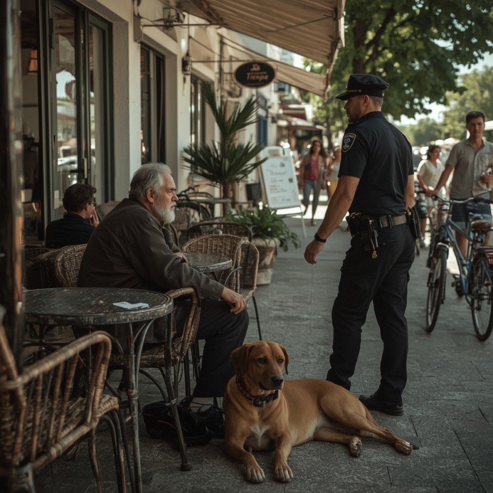 — Jó napot kívánok, uram. Kérem, igazolja magát, és távolítsa el a kutyáját a teraszról. Panasz érkezett.