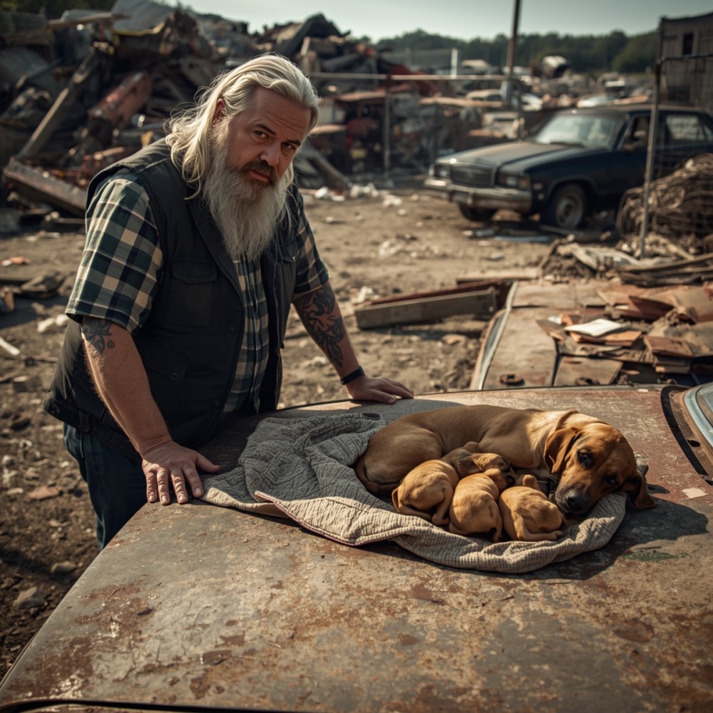 Az anyakutya egy pillanatra feszült, de nem vicsorgott. Csak őrizte a kicsiket, ahogy az anyák szokták: teljes odaadással, még ha már alig álltak is a lábán.