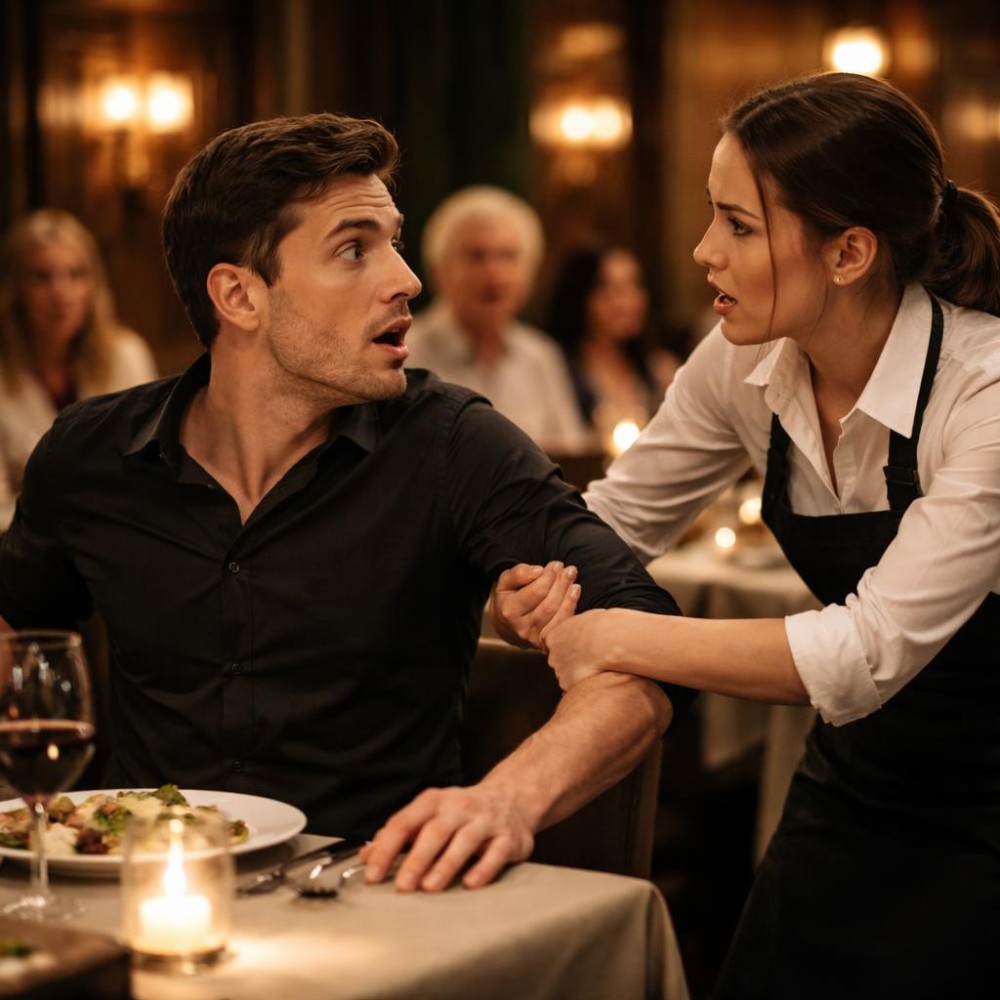 A másik felszolgáló idegesen körbenézett, majd intett a terem végében álló biztonsági embernek. A beszélgetések elhaltak, a zene tovább szólt, de már senki sem figyelt rá igazán. A biztonsági őr határozott léptekkel közeledett, és amikor odaért, egyetlen pillantással felmérte a helyzetet.
