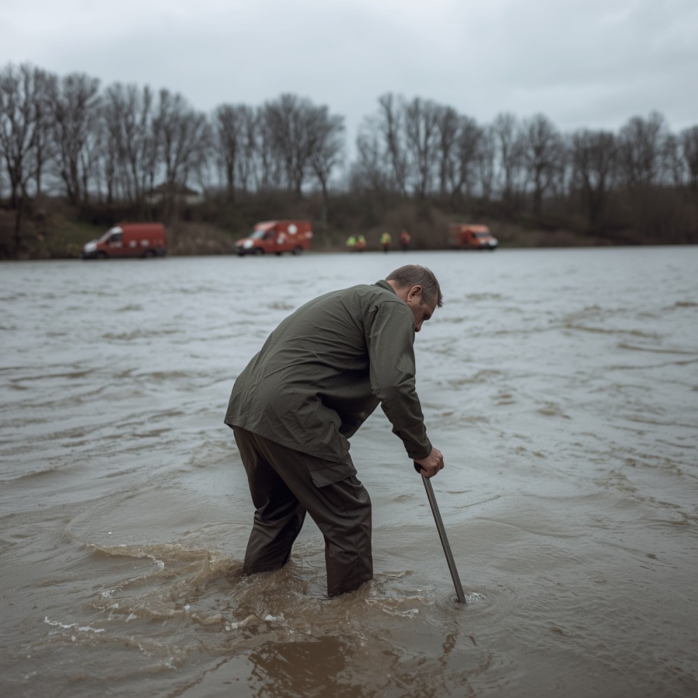 A fájdalom élesen hasított bele, ahogy térdig gázolt az árban. A kutya felé nyúlt, ujjai reszkettek, de a hangja nyugodt maradt.