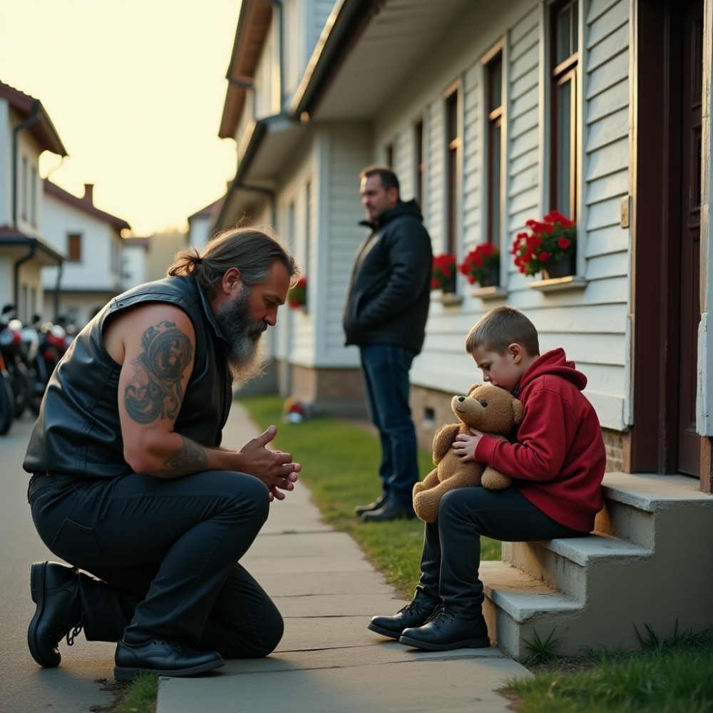 Az utca lassan életre kelt. Függönyök mozdultak, ajtók résnyire nyíltak. Az emberek látták a motorokat, látták a gyereket, és érezték, hogy valami történik.