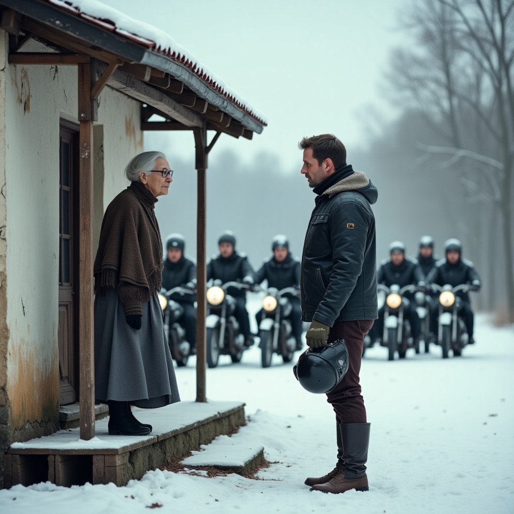 Az udvarra betértek. Tizenöten lehettek, s a zaj, amit a motorok adtak, mintha megbontotta volna a ház falait. Az asszony szíve hevesen vert. Eszébe jutott a lánya, aki már évek óta Ausztriában élt, s akit havonta egyszer hallott csak. Mit mondana most neki? Hogy idegenek álltak meg nála egy hóvihar kellős közepén?