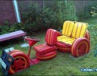 A már nem használt, régi, kopott gumiabroncsokat régóta használják a virágágyások kialakítására vagy a játszótereket elválasztó kerítések létrehozására. A régi gumiabroncsoktól gyönyörű hinták, kerti bútorok, különféle állatok, madarak, homokozó stb. hozható létre.