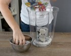 Egy keskenyebb vázát helyezzünk bele egy nagyobb öblösebb vázába, majd a keskenyebb vázát töltsük meg kb. a feléig kövekkel.