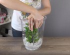 Az öblösebb váza aljára tegyünk néhány kavicsot vagy homokot, majd erre helyezzünk néhány olyan növényt, amely akváriumba való.