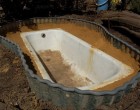 Először a kádat be kell ásni a földbe, vigyázva rá, hogy a belső része üres maradjon. A tavacska oldala szinte bármiből készülhet, a szomszédom régi csövekkel vette körül.