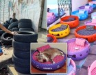 – gondolta a férfi, mikor egy nap meglátott egy nagy rakás autógumit az út mellett. Eldöntötte, hogy ágyakat készít belőlük az utcán kóborló állatoknak.
