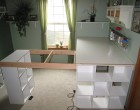 Mivel az asztal lábai polcokból állnak, rengeteg dolgot tárolhatsz rajta, ahogyan a képeken is láthatod. Nagyon ötletes megoldás!