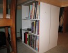 2. Mikor ezzel készen volt, falécekkel összefogta a polcokat. Néhány csavarral rögzítette a léceket a polcokhoz.