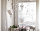 Mesébe illő hangulat, amit mi magunk is meg tudunk teremteni az otthonunkban. Hogyan? Ezt fogjuk ma bemutatni nektek. A most következő fotókon azt láthatjátok, milyen egy hópehellyel díszített függöny. Ezek a hópelyhek apró fehér anyagból készültek és fel lettek fűzve egy szál zsinórra. A fehér anyag helyett használhatunk vattapamacsot is.
