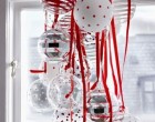 A fotókon láthatjátok azt is, hogyan készíthettek girlandot kisebb gömbökből vagy papírból kivágott csillagokból. Ezeket fel lehet akasztani az ablak fölé.