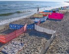 A napernyők és a napozóágyak mellett, az ott élő emberek egy speciális kerítést is magukkal visznek a tengerpartra.
