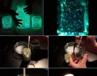 Kell hozzá egy befőttes üveg, egy kis foszforeszkáló festék és egy ecset. Kipöttyözöd a festékkel az üveget belülről, fény felé tartod, feltöltöd és már világít is:)