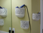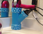 Egy műanyag csőből készíthetünk egy hajszárítótartót.