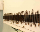 A fémből készült apró eszközöket helyezzük a falra rögzített mágneses szalagra.