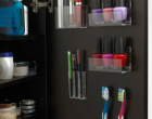 Ezeket a műanyagból készült tárolókat felszerelhetjük a fürdőszobaszekrény ajtajának a belső részére.