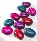 A vidám kis porfogóknak egy kis fantáziával még funkciót is adhattok. Csupán néhány ötlet: dominókocka, társasjátékhoz bábuk, hűtőmágnes, levélnehezék, vagy asztal sarkára nehezék, kerti jelölő, terítéshez névtábla, járdaszegény vagy mozaikozáshoz kiegészítő elem.