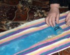 A polietilén, vagy műanyag csíkra terítünk egy réteg vécépapírt.