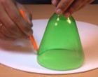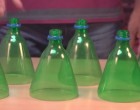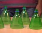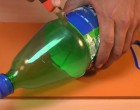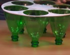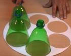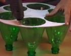 10. Helyezzük bele a kivágott körökbe az elvágott műanyag flakonokat és rögzítsük őket ragasztószalaggal