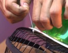 11. Rögzítsük a flakonokat a szilikonpisztoly használatával, hogy stabilan álljanak a kartonlapon