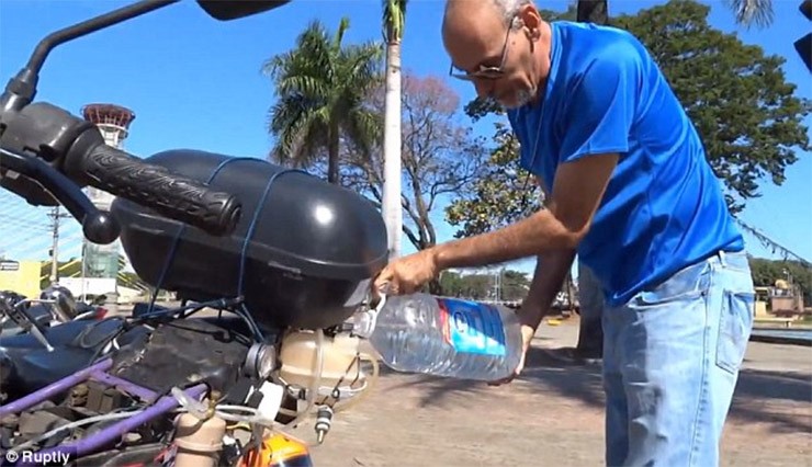 Később az üzemanyag tartályt újra teletölti, itt már szennyezett vízzel a Tiete folyóból. A motornak ez meg sem kottyan, és egy liter vízzel vígan elrobog 500 kilométeren át.