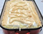Visszatesszük a sütőbe. Közben keményre verjük a tojásfehérjét a cukorral.