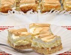 250 g liszt, 80 g vaj, 50 g porcukor, 1 tojás, 1/2 dl tejföl, késhegynyi szódabikarbóna; a töltelékhez: 500 g áttört túró, 150 g cukor, 25 g búzadara, 2 tojássárgája, 1 dl tejföl, 2 tojásfehérje habbá verve; a tetejére: 4 tojásfehérje, 90 g cukor; baracklekvár a tésztalap megkenéséhez