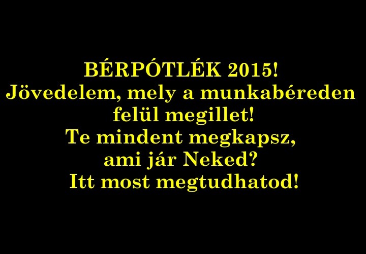 BÉRPÓTLÉK 2015! Jövedelem, mely a munkabéreden felül megillet! Te mindent megkapsz, ami jár Neked? Itt most megtudhatod!-megosztással kérlek segíts, hogy a lehetős legtöbb emberhez eljuthasson a cikk, mert ez mindenkinek fontos! Köszi!