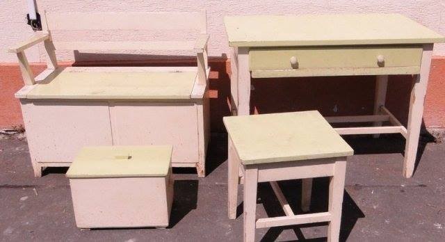 Szegényen, de mégis boldogan éltek abban az időben :) a képen látható: asztal a fiók alatt a kihúzható gyúródeszkával, hokedli, szennyesláda és egy amibe a dédszüleim tisztítószereket tároltak(például:cipő tisztító keféket, sparhelt tisztítókat stb.) Ezekben még volt anyag és remekül elfért bennük minden.