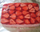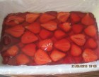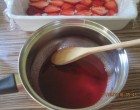 Közben a tortazselét, ha már sűrűsödik, ráöntöm az eperre és mehet a hűtőbe!