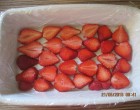 Kibélelem folpackkal a tálat és kirakom szeletekre vágott eperrel.